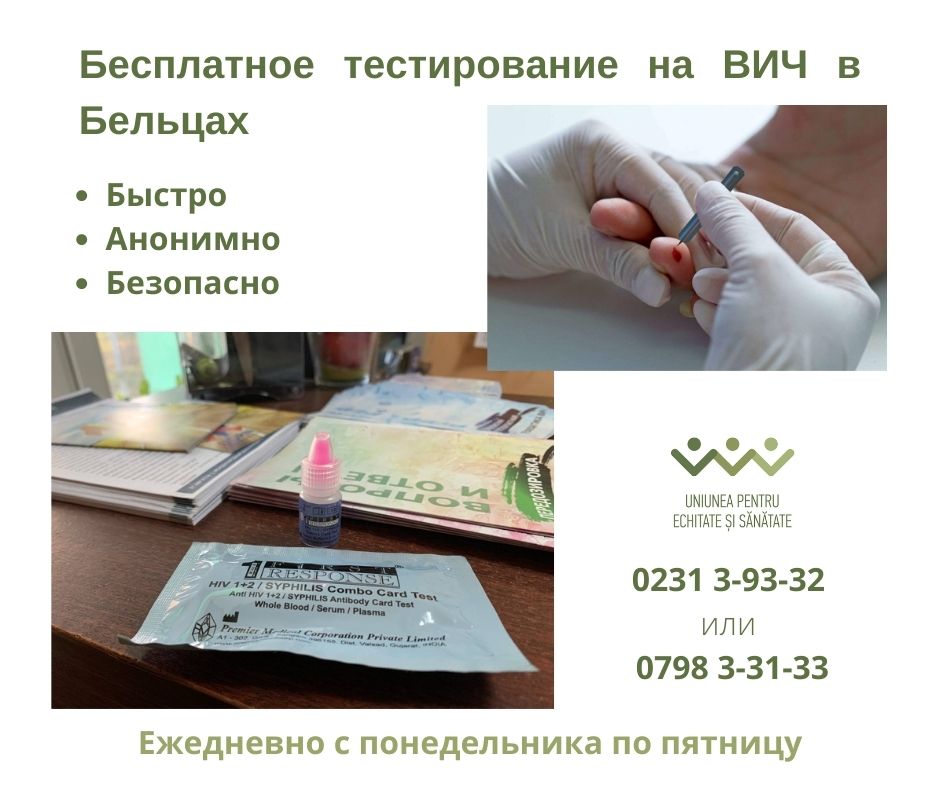 Пройдите бесплатное тестирование на ВИЧ. „Союз за справедливость и здоровье” предлагает всем узнать свой ВИЧ-статус. Процедура полностью анонимна. Экспресс-тест определяет ВИЧ-статус человека за несколько минут. Услуга бесплатна и доступна для всех желающим.