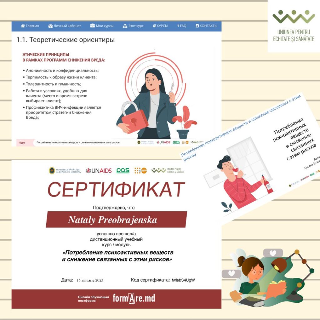 Хотите знать больше о том, что такое психоактивные вещества, зависимость и какие меры принимаются, чтобы снизить вред и минимизировать последствия зависимого поведения? Пройдите увлекательный курс „Потребление психоактивных веществ и снижение связанных с этим рисков” на платформе https://formare.md