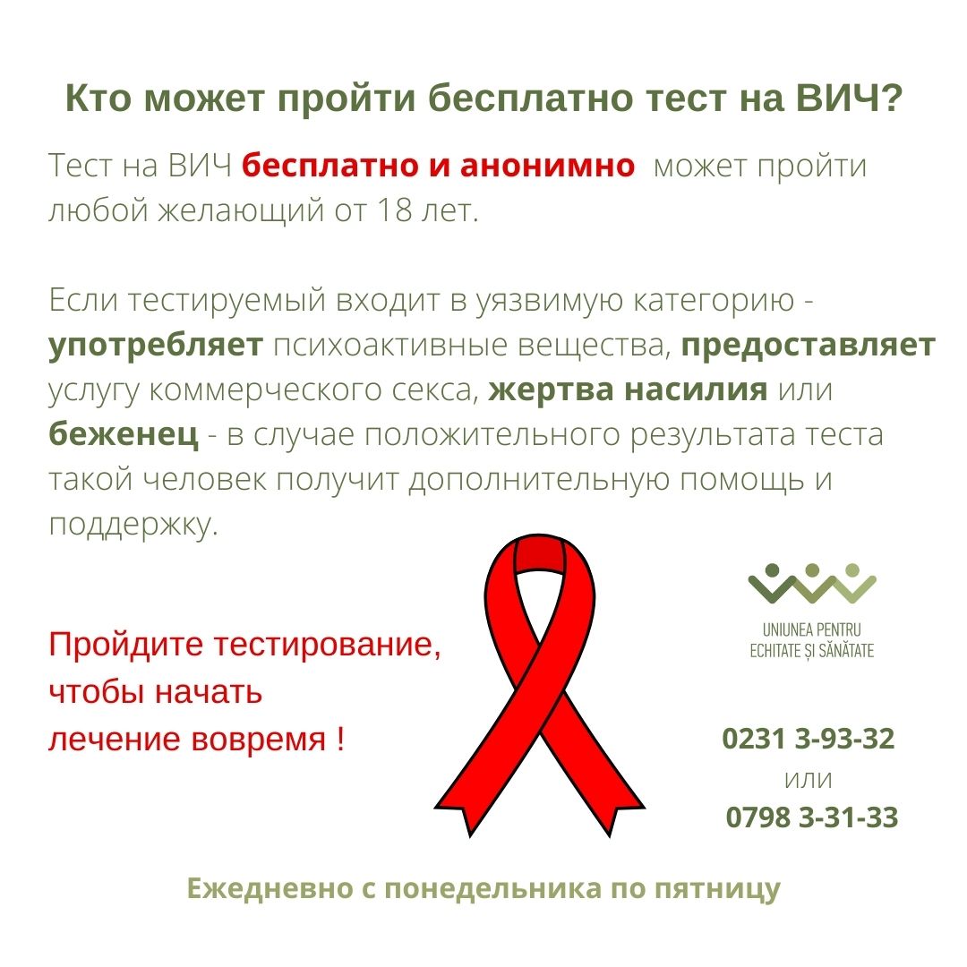 Если тестируемый входит в уязвимую категорию – употребляет психоактивные вещества, предоставляет услугу коммерческого секса, жертва насилия или беженец – в случае положительного результата теста такой человек получит дополнительную помощь и поддержку.