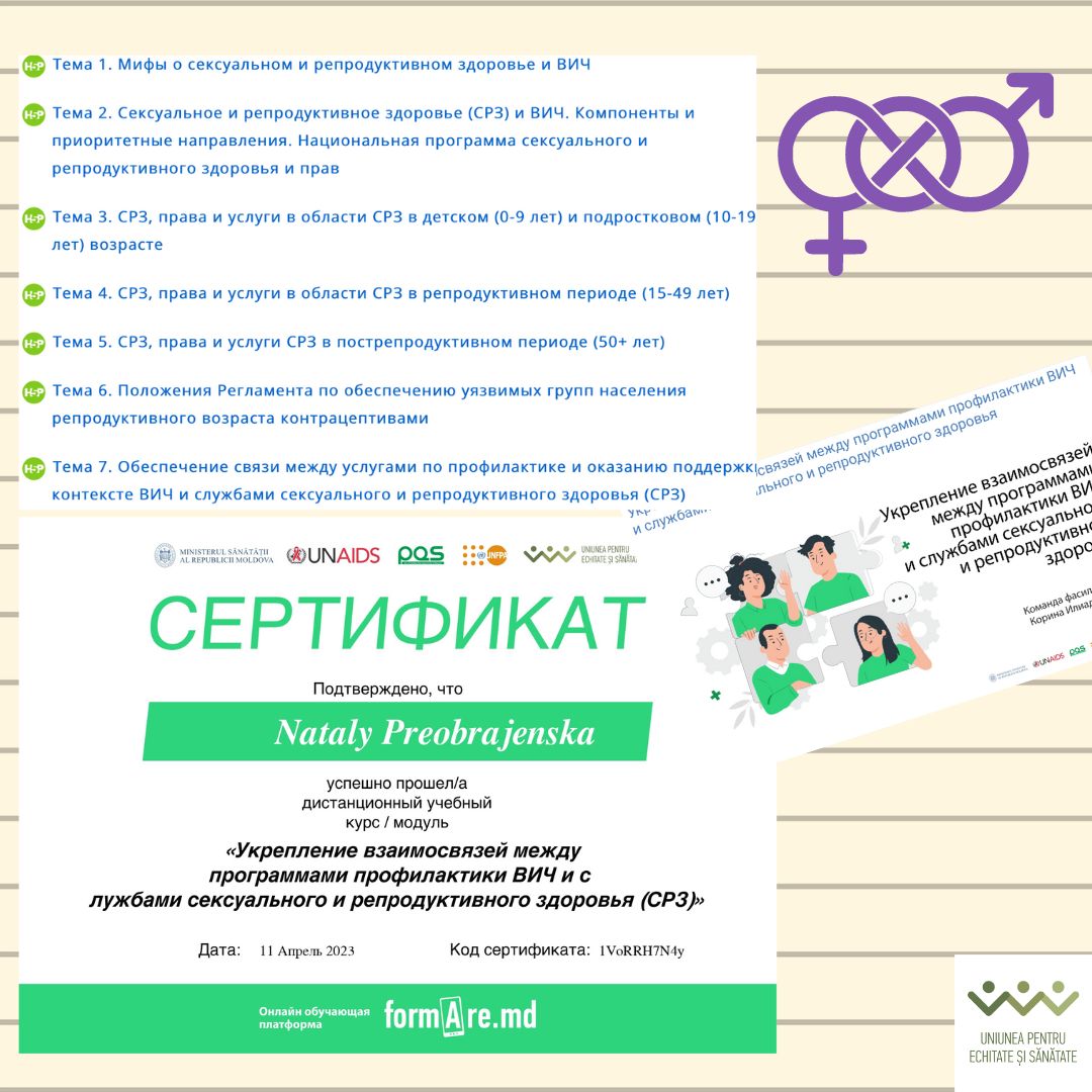 Насколько хорошо вы знаете свой статус сексуального и репродуктивного здоровья? Проходите ли вы профилактические осмотры, для того, чтобы вести полноценную сексуальную жизнь в любом возрасте? Что вообще такое сексуально и репродуктивное здоровье, почему это так важно? Rак система здравоохранения Молдовы помогает заботиться о себе? На эти вопросы вы найдете ответы в курсе «Укрепление взаимосвязей между программами профилактики ВИЧ и слухами сексуального и репродуктивного здоровья» на образовательной платформе https://formare.md/