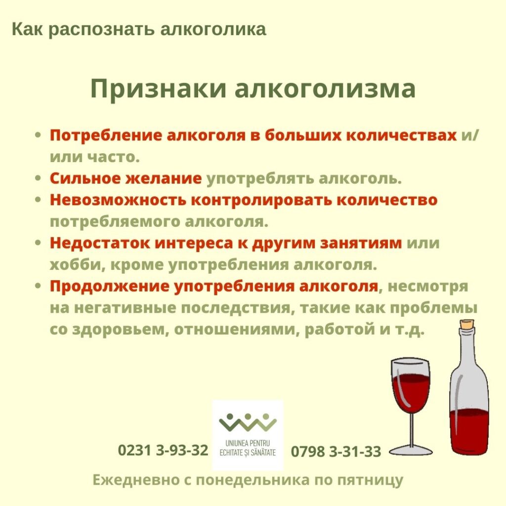Эти признаки не гарантируют, что человек страдает от алкогольной зависимости, но если у вас или у кого-то из ваших близких есть эти признаки, рекомендуется обратиться к специалисту для диагностики и лечения проблем с алкоголем.