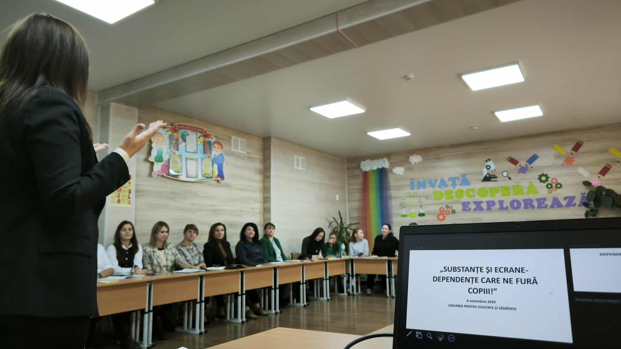 Atelierul a inclus o prezentare generală despre tipurile de dependențe – de substanțe, ecrane și comportamente, situațiile favorizante și o sesiune de reflecție privind rolul cadrului didactic în prevenirea și susținerea elevilor aflați la risc. Participanții au analizat factori de vulnerabilitate și modalități de intervenție timpurie, subliniind importanța unei comunități educaționale unite și atente la nevoile copiilor.